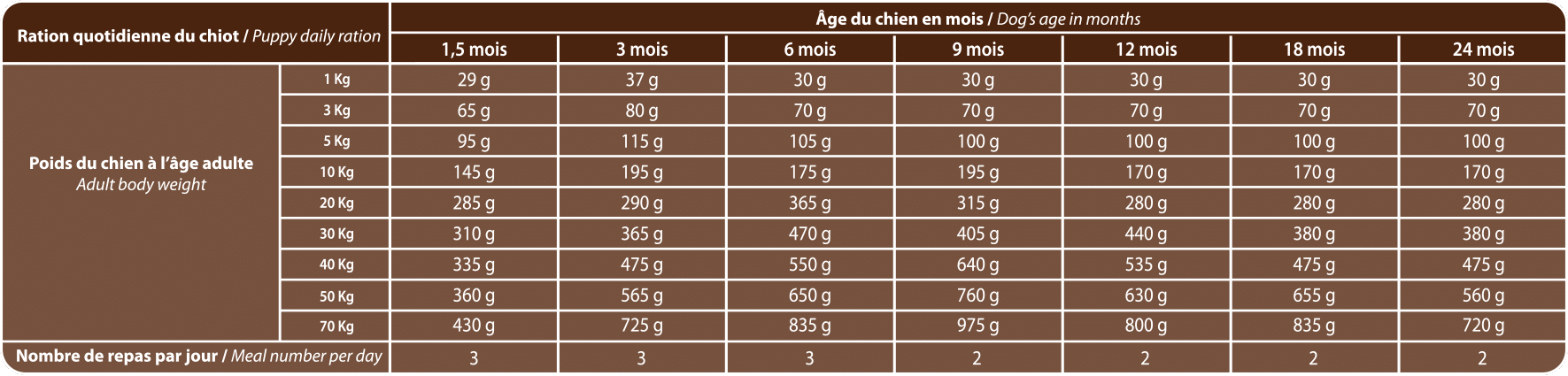 • Pour chiots et jeunes chiens moyennes et grandes races